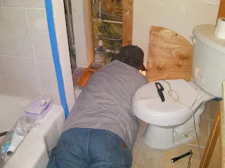 It didn’t work. I had to do something about a pipe in the way. After backing out, I went in again with a reciprocating saw to cut off the abandoned galvanized pipe. There was also a gas pipe coming out. Couldn’t cut that! Being used. Tony did a good job of keeping it out of my way.