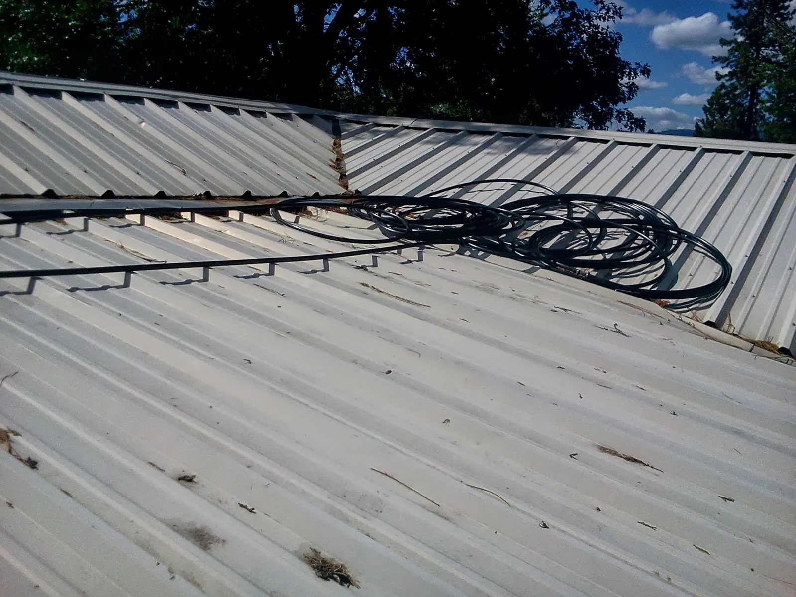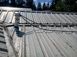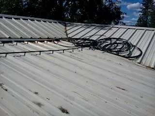 The hovel is without a real water heater, so I rigged up a solar water warmer with black tubing on the roof.