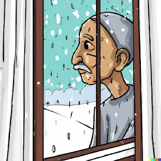 I asked ChatGTP and DALL-E to generate a story and illustration about an old man being grumpy about it being too cold and snowy to go out and ride his bike.
