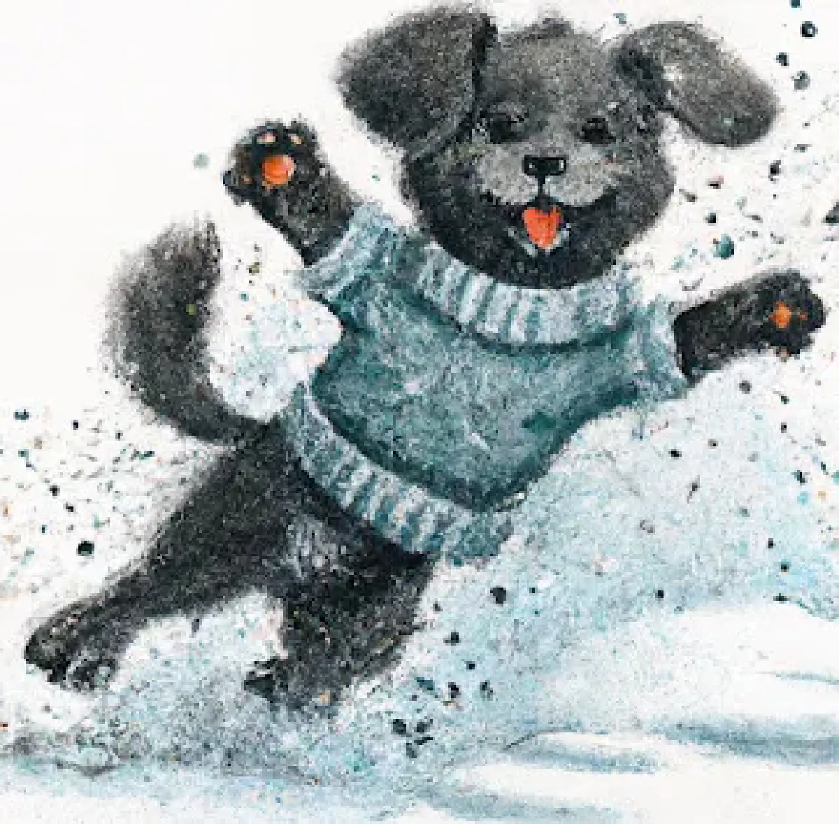 As the snow started to fall outside, Barky wrapped Beatrice up in a warm sweater and took her outside to play. Beatrice had never seen snow before, and as she ran and chased after the snowflakes, she felt more alive and free than she ever had before.