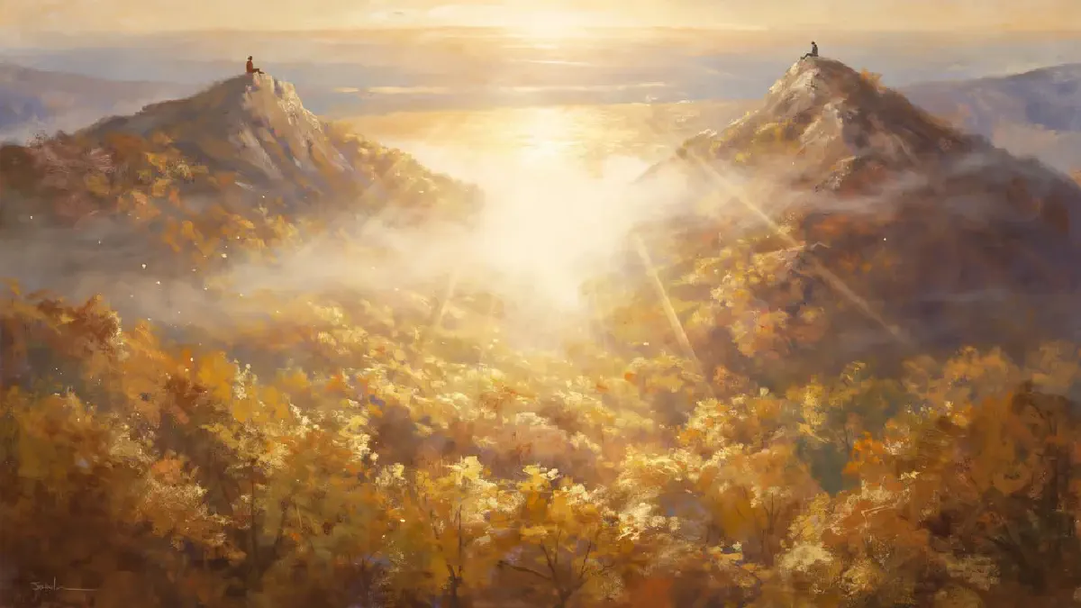 as I am doing now, on my mountain, and you rest your chin on your knee, watching the valley shiver like a yellow sea of leaves. You have already wept.